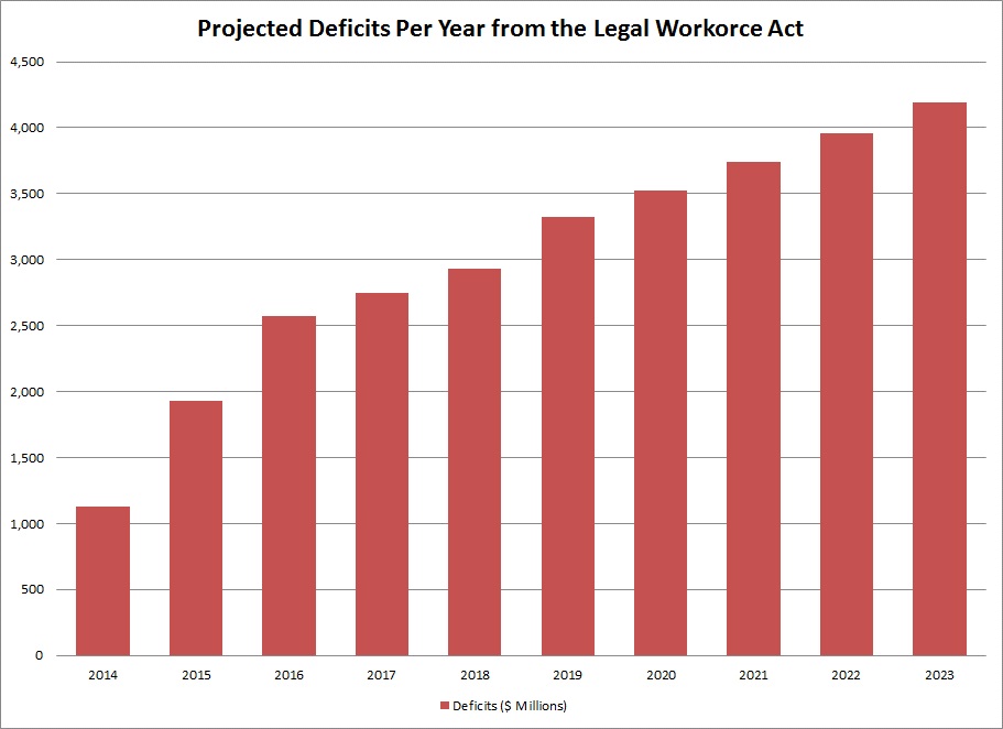 The Legal Workforce Act imposes new costs on the federal government, on state and local governments, on employers and employees, and will push some workers further into the underground economy – all without (thankfully) achieving its core objective of excluding unauthorized immigrants from the workforce. While the CBO may not be known for its accurate fiscal projections, the inevitable net fiscal costs of this bill make it hard to draw anything positive from this recent report.