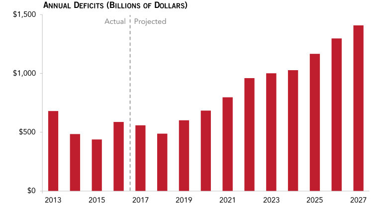 As the new president and Congress prepare their policy agenda for 2017, the non-partisan Congressional Budget Office (CBO) reports that America continues to face serious fiscal and budgetary challenges. CBO projects that, on our current path, deficits will reach $1 trillion by 2023 and total $9.4 trillion over the next ten years.