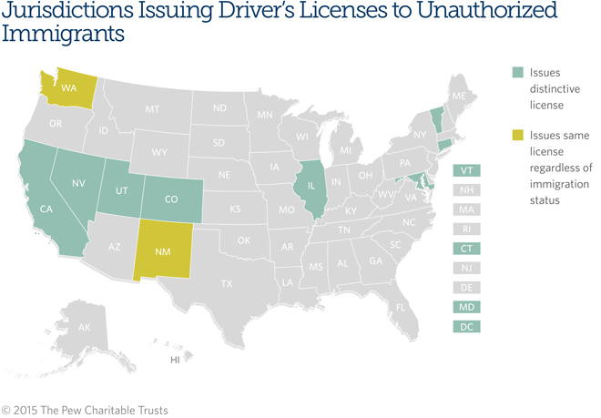 This week, The Pew Charitable Trust released a report showing all the states that now allow undocumented residents to have driver’s licenses or driving permits. The report show that currently there are now 12 states and the District of Columbia that allows these residents legally drive.