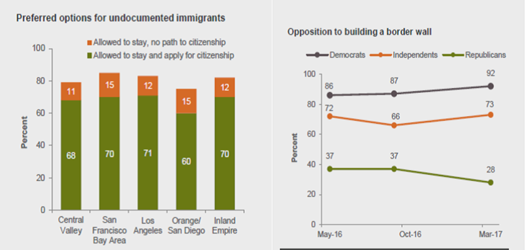 “The proposal to build a wall along the entire Mexican border is not gaining any traction in California,” Baldassare said.