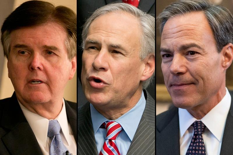Lt. Gov. Dan Patrick, Gov. Greg Abbott and House Speaker Joe Straus.