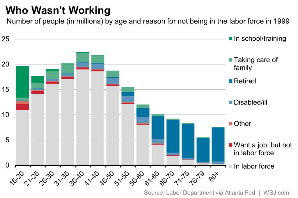 NILF2_G-1024x682 The Labor Department data shows that of these 94 million of unemployed Americans  41 million Americans don’t work because they’re retired and 15 million of young Americans  are in school.   So claiming that we have 94 millions of American unemployed is only phony claims in right-wing blogs that generate anger among the “white blue-collar” workers who may have lost their jobs to global markets or companies relocating oversea.
