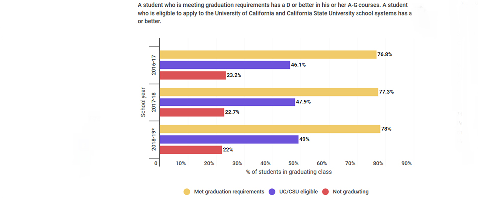 Less Than Half of Los Angeles’s Class of 2019 Are on Track to Graduate With Grades That Would Make Them Eligible to Apply for California’s Public Universities