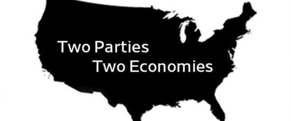 America’s political polarization is almost complete. Its two main political parties increasingly represent two different economies. And they barely overlap.