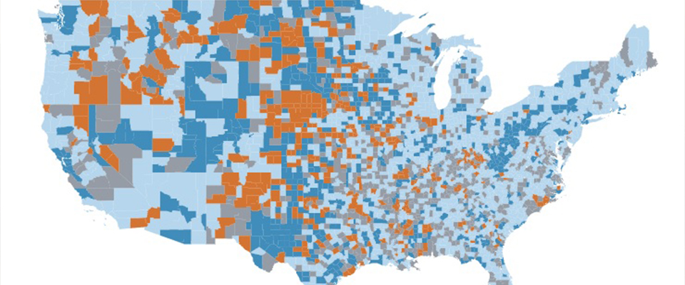 The numbers are yet another illustration of the urban-rural divide that characterized the 2016 election. Democratic-dominated metropolitan areas are thriving, attracting employers and highly educated and skilled workers who can earn big paychecks. Democrat Hillary Clinton won fewer than 500 of the nation’s 3,000 counties, but they accounted for nearly two-thirds of the nation’s GDP, according to an analysis by the Brookings Institution. Meanwhile, many residents of rural counties and smaller cities, most of which voted for Donald Trump, face diminished job prospects or depend on the ups and downs of energy and agriculture.